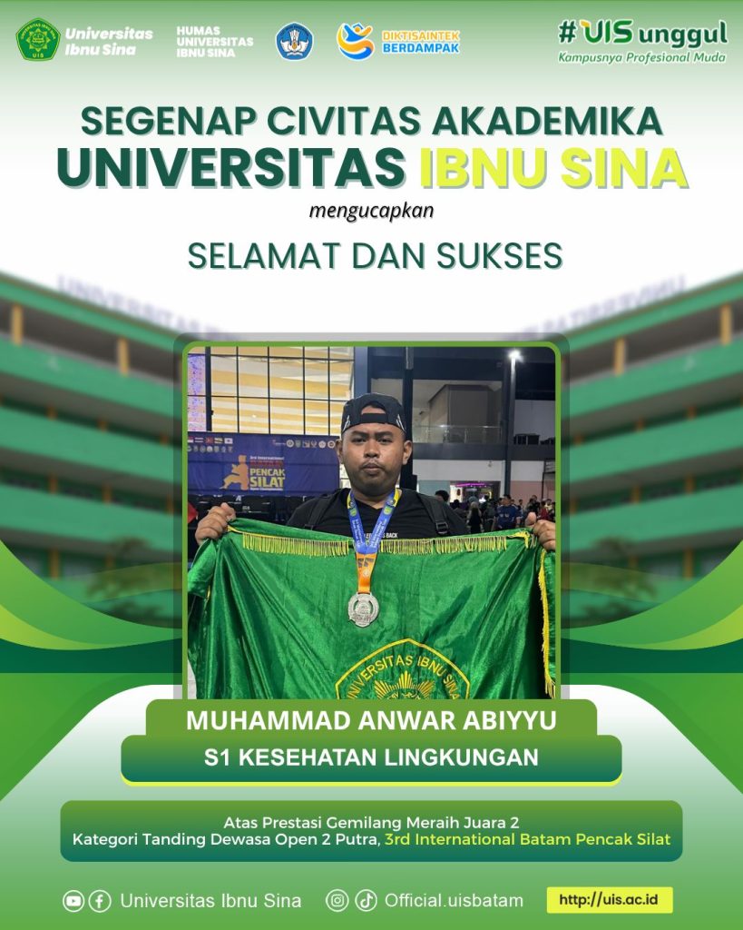 UIS- Lima mahasiswa Universitas Ibnu Sina berhasil mengharumkan nama kampus dengan meraih prestasi di ajang bergengsi 3rd International Batam Pencak Silat Open Championship 2025 yang berlangsung pada 6-9 November 2025 di Mall Botania 2 (MB2).